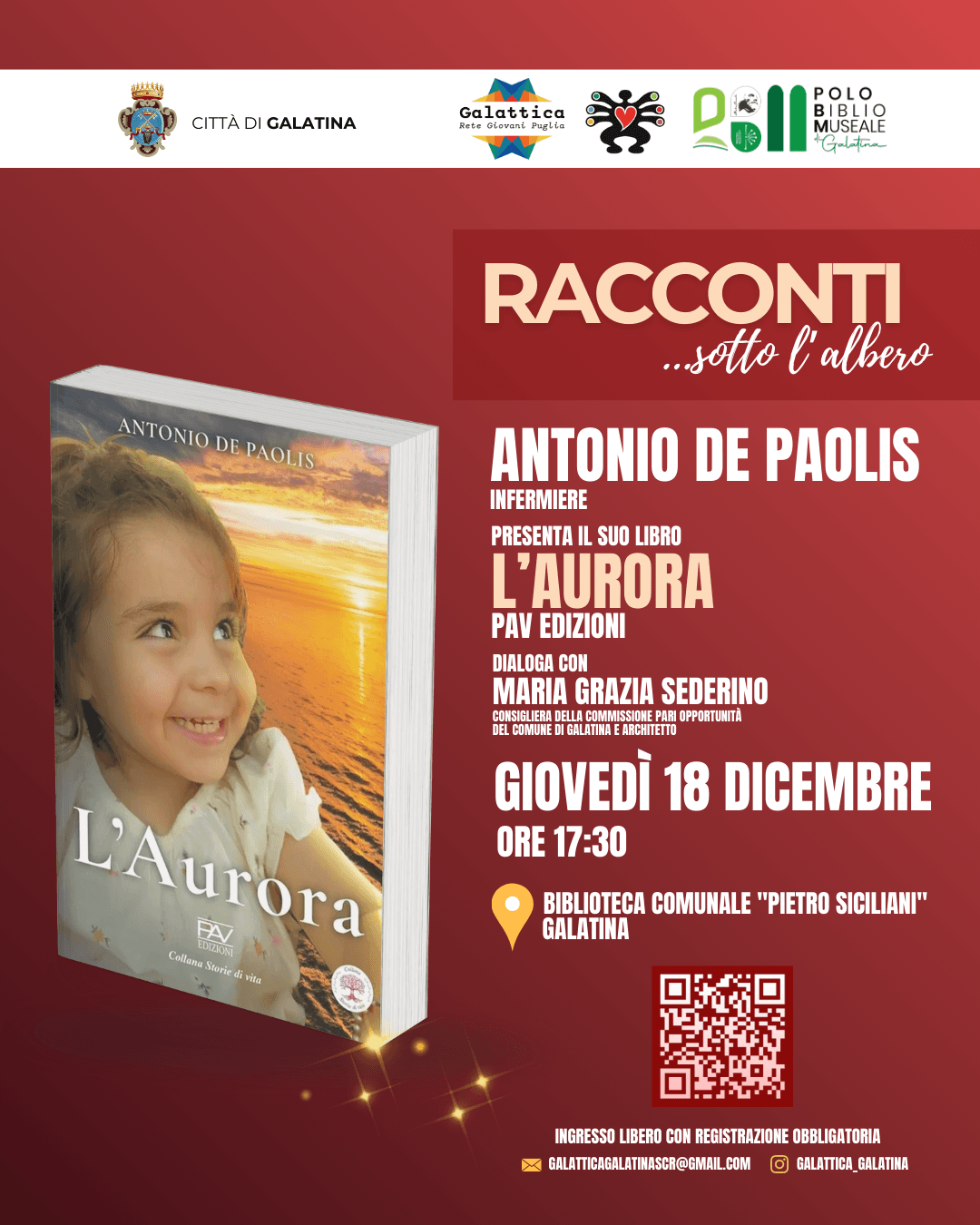 Il secondo incontro è in programma per mercoledì 18 dicembre 2025, alle ore 17:30, e si terrà presso la Biblioteca Comunale di Galatina, Piazza Alighieri 51.