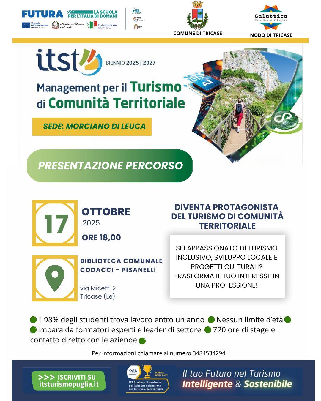Presentazione percorso MANAGEMENT PER IL TURISMO DI COMUNITA’ TERRITORIALE