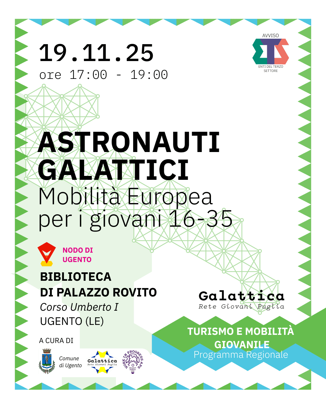I giovani di Ugento saranno i protagonisti di Astronauti Galattici, il programma del Nodo Galattica Galatone pensato per orientare ragazze e ragazzi tra i 16 e i 35 anni alle opportunità della Mobilità Europea.
