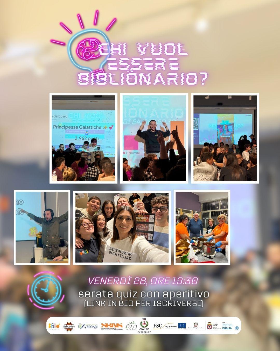 🔥 Venerdì 28 novembre torna l’evento più epico di Bibliò! Una serata tra quiz, cultura, risate e buon cibo, dove metterete alla prova la vostra conoscenza… e se non vincete, vi consolate con le 𝗽𝗶𝘁𝘁𝘂𝗹𝗲 della Pro Loco! 😏🔥