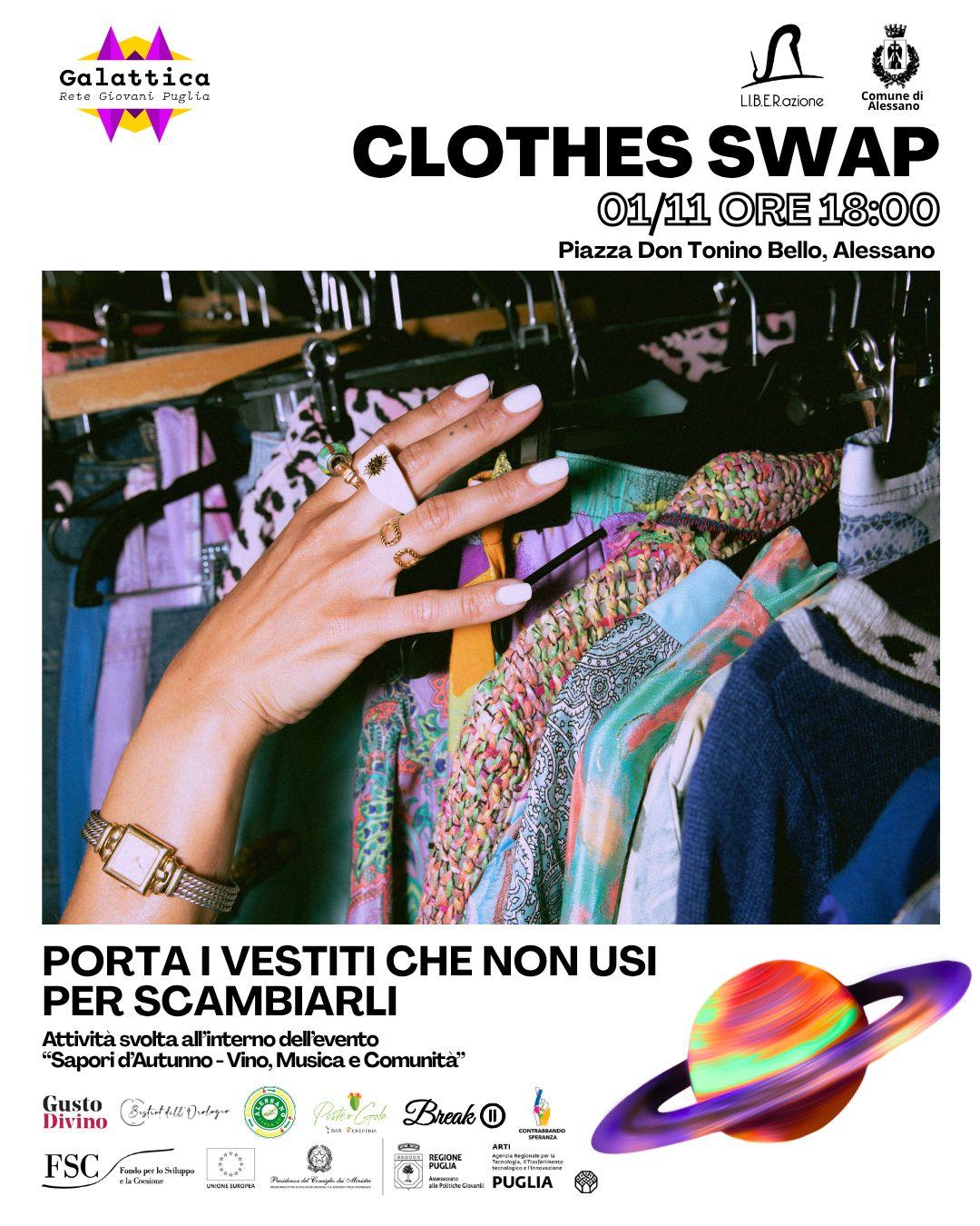♻️ L’1 novembre dalle 18:00 in Piazza Don Tonino Bello ad Alessano, partecipa al nostro evento Clothes Swap: un evento di scambio di vestiti gratuito e sostenibile.