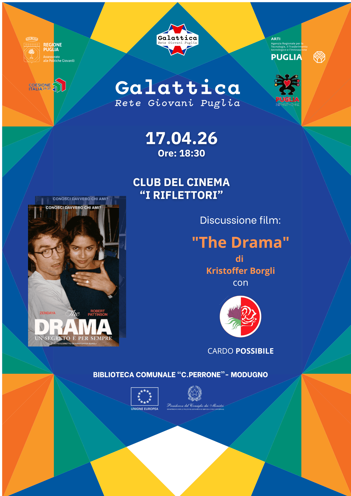 Il Club del Cinema “I Riflettori” vi aspetta venerdì 17 aprile alle 18:30 alla Biblioteca Comunale “C. Perrone” di Modugno per la discussione del film “The Drama” di Kristoffer Borgli.
