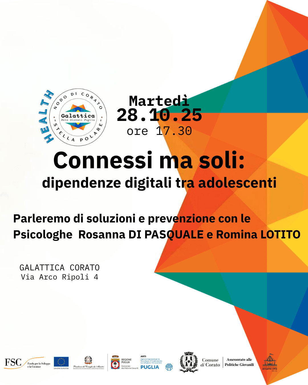Ne parliamo a Galattica Corato con le Psicologhe Rosanna Di Pasquale e Romina Lotito, diffondendo informazioni per cercare soluzioni e fare prevenzione.