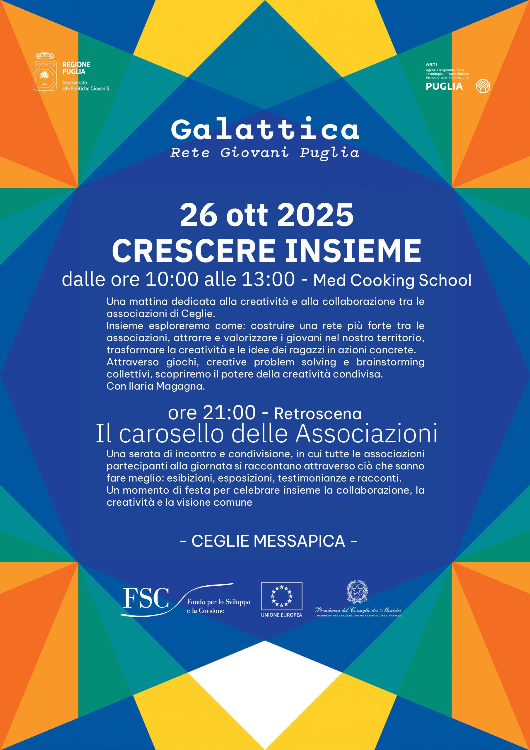 Insieme esploreremo come costruire una rete più forte tra le associazioni, attrarre e valorizzare i giovani nel nostro territorio, trasformare la creatività e le idee dei ragazzi in azioni concrete.