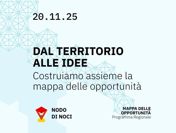 Giovedì 20 novembre 2025 presso la Biblioteca Comunale di Noci, sita in Via Cappuccini n°4, si terrà il laboratorio “La mappa delle opportunità – dal territorio alle idee”.