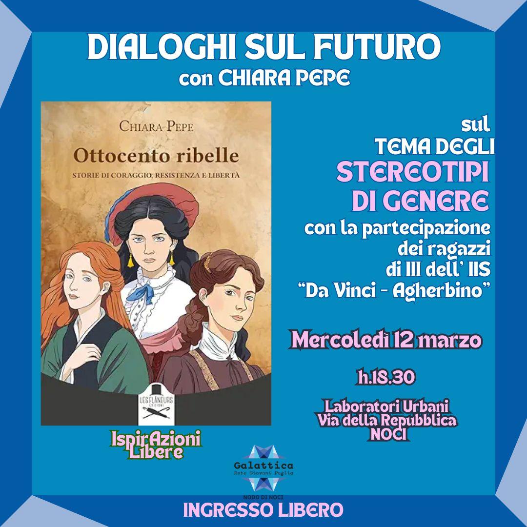 Nell’appuntamento di mercoledì si parlerà di stereotipia di genere e libertà, insieme a Chiara Pepe, autrice del volume “Ottocento Ribelle” edito da Les Flaneurs edizioni.