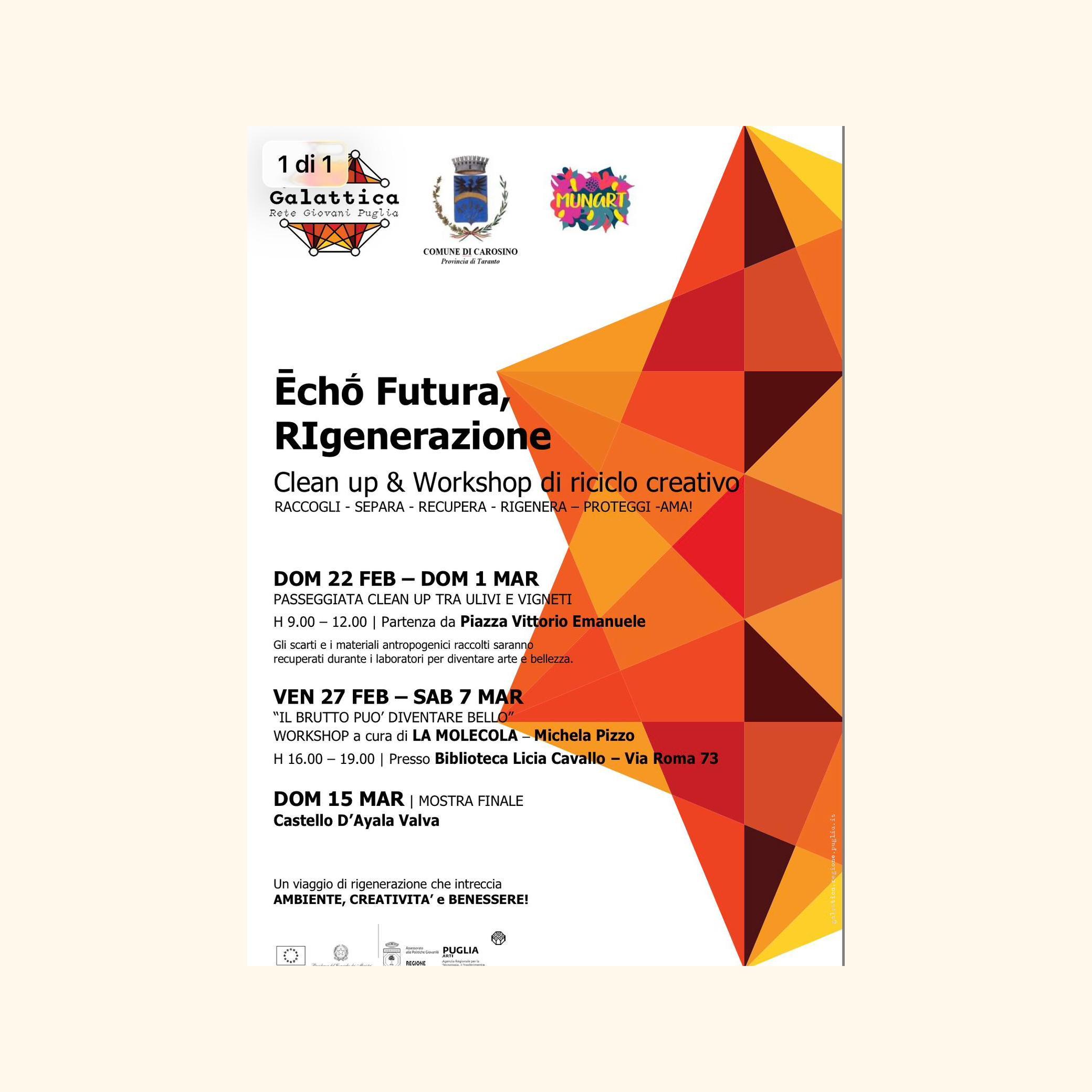 Echó Futura, Rigenerazione è un’iniziativa MUNART E.T.S., proposta e sviluppata all’interno del progetto GALATTICA, del nodo di Carosino.