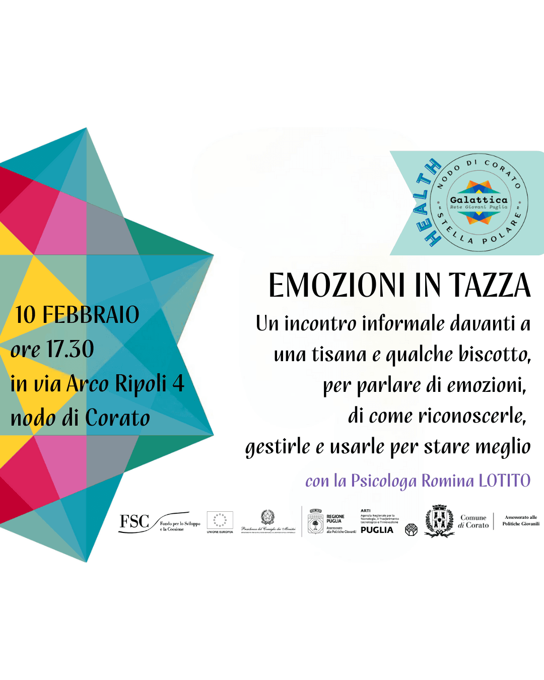 🗓️Con la Psicologa Romina Lotito ti aspettiamo martedì 10 Febbraio alle ore 17,30 nel nodo Galattica di Corato, in via Arco Ripoli,4