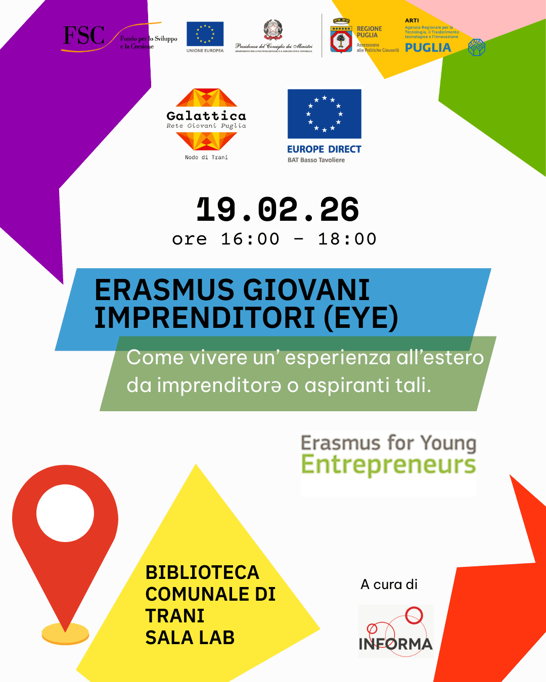 Partecipa al nostro evento dedicato all’Erasmus per Giovani Imprenditori (EYE): un’opportunità europea che ti permette di vivere un’esperienza in un’altra azienda in Europa (e non solo), affiancando imprenditori e imprenditrici esperti/e, imparando sul campo e costruendo contatti che possono cambiare la traiettoria del tuo business. 🌍✨