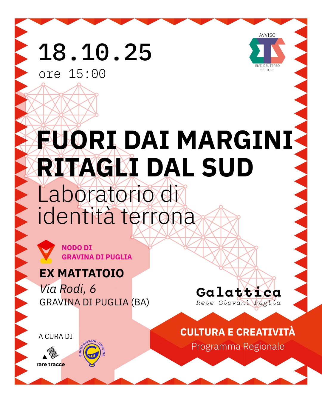 Il workshop di MÁS – Movimento per l’Autocoscienza del Sud si basa su pratiche creative e partecipative. Tramite l’utilizzo di riviste e giornali, le persone partecipanti ricreano la propria personale esperienza e il proprio vissuto come persone meridionali e/o queer nella forma del collage, restituendo un’immagine sia a sè stesse che alla collettività che partecipa. Ci sarà anche un momento introduttivo di lettura e condivisione di estratti di libri o testi inerenti al transfemminismo meridionalista, scelti da chi li legge. Segue una condivisione dei materiali emersi e dei dati reperibili su tematiche queer nel meridione