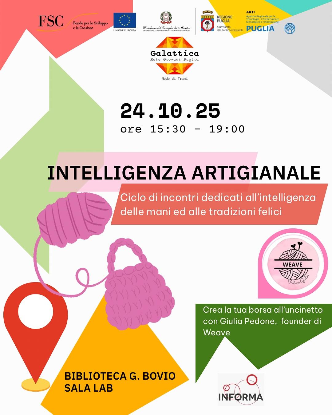 Lo sportello Galattica di Trani presenta il primo appuntamento di Intelligenza Artigianale, un ciclo di laboratori creativi e collettivi per imparare arti antiche e stare bene insieme.
