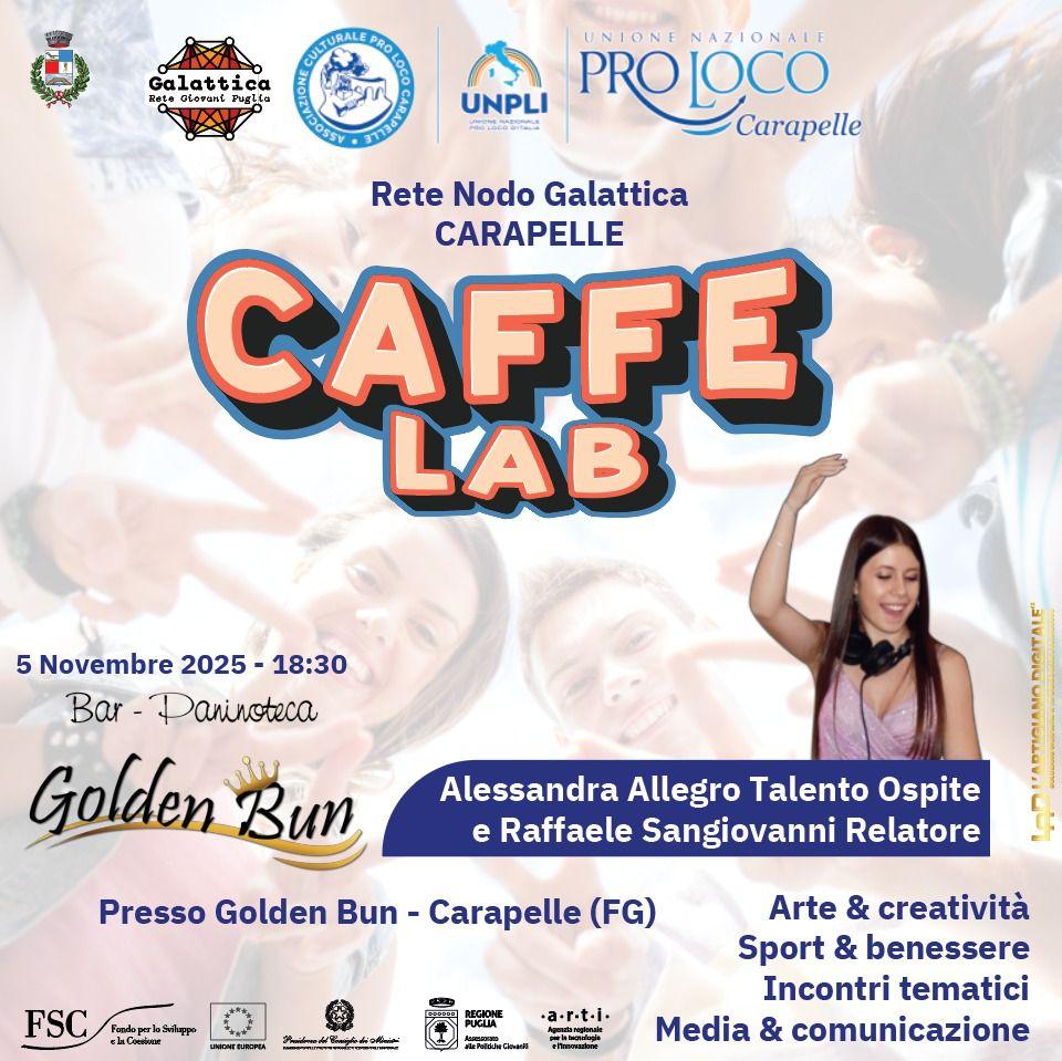 Il 5 novembre 2025 alle ore 18:30, vi aspettiamo al Golden Bun di Carapelle (FG) per un nuovo appuntamento del Caffè Lab, il format di incontri e confronto della Rete Nodo Galattica Carapelle!