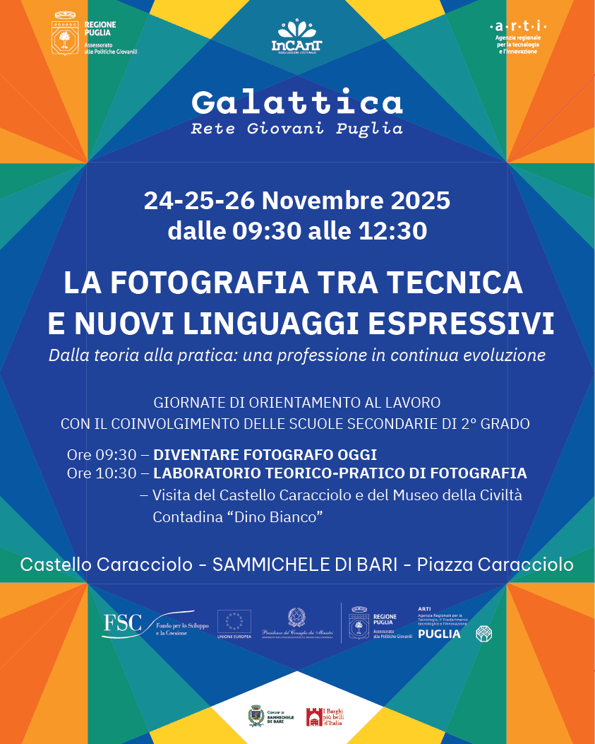 ore 10:30 – LABORATORIO TEORICO-PRATICO DI FOTOGRAFIA: approfondimento sulla conoscenza della tecnica e dell’arte fotografica,