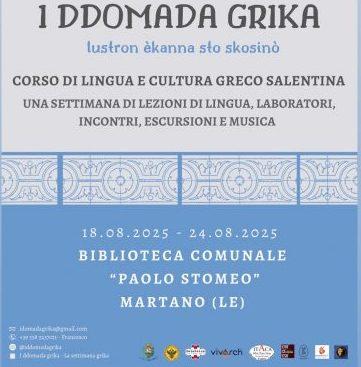 Dal 18 al 24 agosto ritorna I Ddomada Grika, e questa volta sarà a Martano: una settimana immersiva tra lingua, cultura e comunità.
