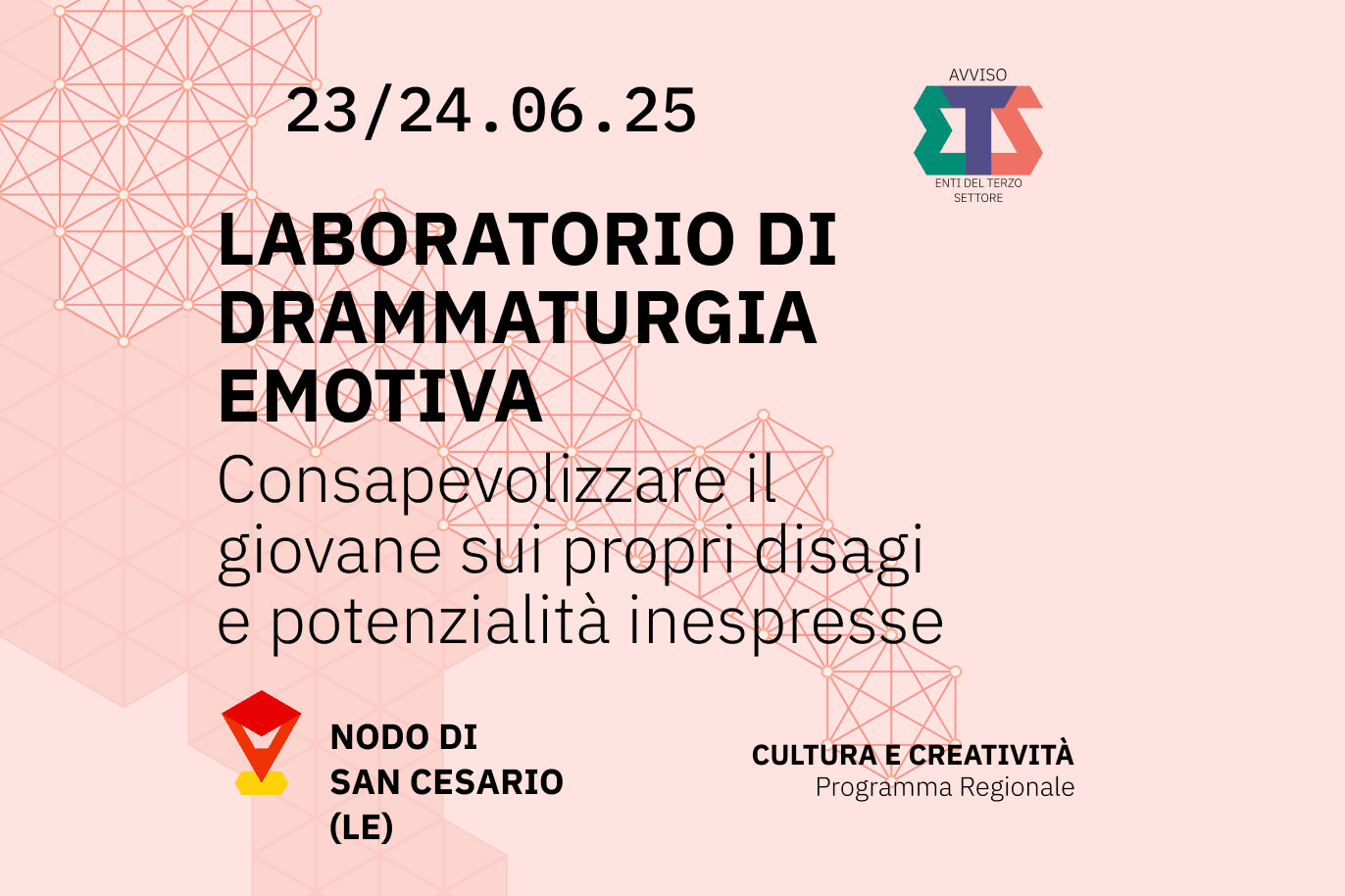 Il laboratorio, a cura di R.E.M.S. APS (alias FRAUME TEATRO), affronta un percorso di drammaturgia emotiva, lavorando sulla coscienza del sé quotidiano nella dimensione personale e in quella sociale, partendo dalle dinamiche di composizione monologica, dialogica e didascalica (pensieri, intenzioni, reazioni).