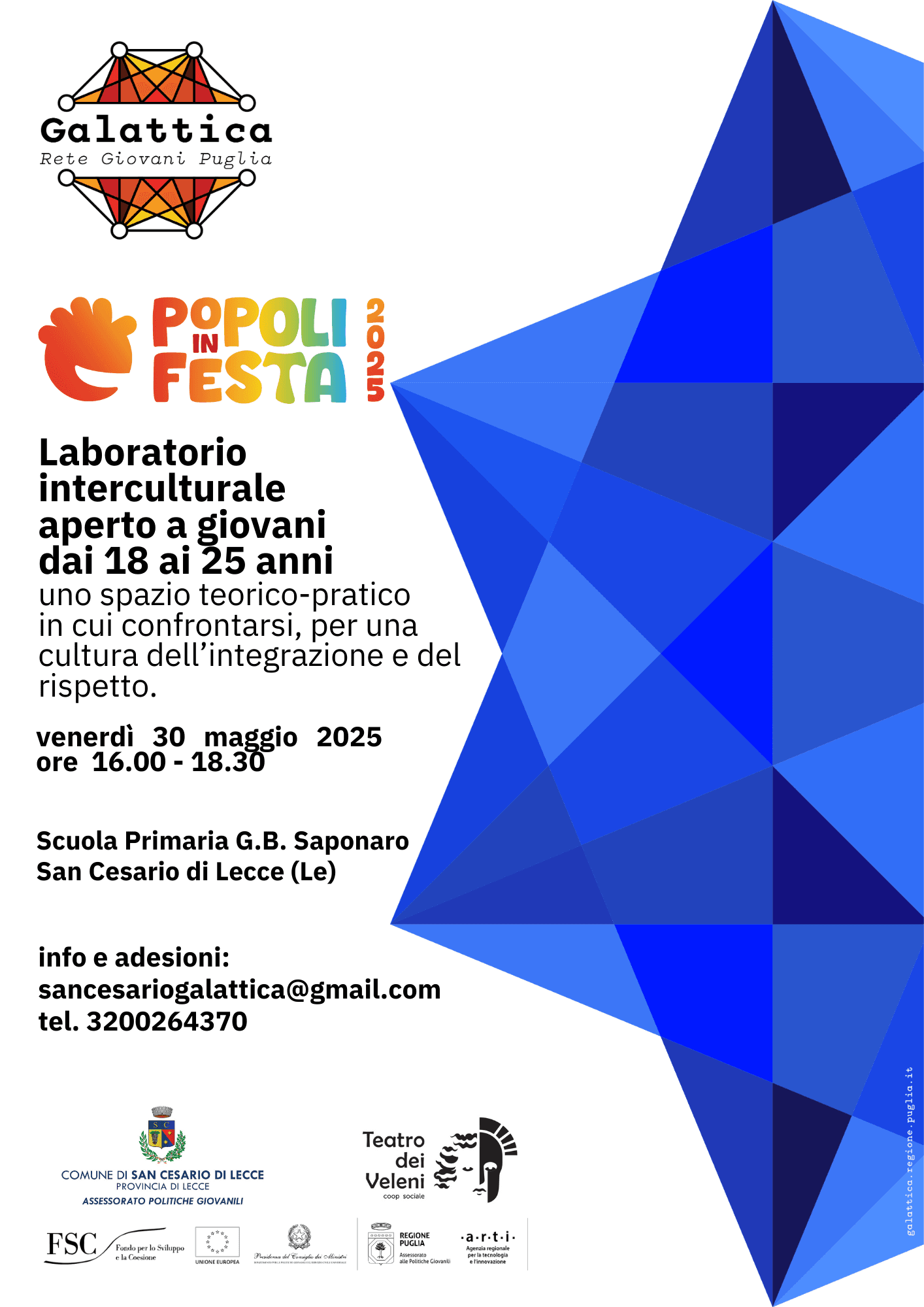 Teatro dei Veleni coop. sociale e Nodo Galattica di San Cesario hanno aderito con entusiasmo e convinzione all’iniziativa ‘Popoli in festa’, perché in questo periodo storico sentono forte la necessità di promuovere consapevolezza culturale, nel caso specifico, nell’ambito di un incontro aperto a tutti i giovani tra i 18 e i 25 anni, appartenenti a origini, tradizioni e pratiche diverse.