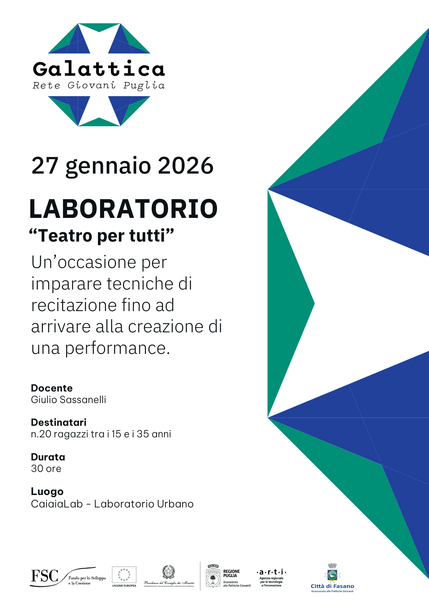 🎭 Martedì 27 gennaio ha inizio al Nodo di Fasano un nuovo laboratorio gratuito: “Teatro per