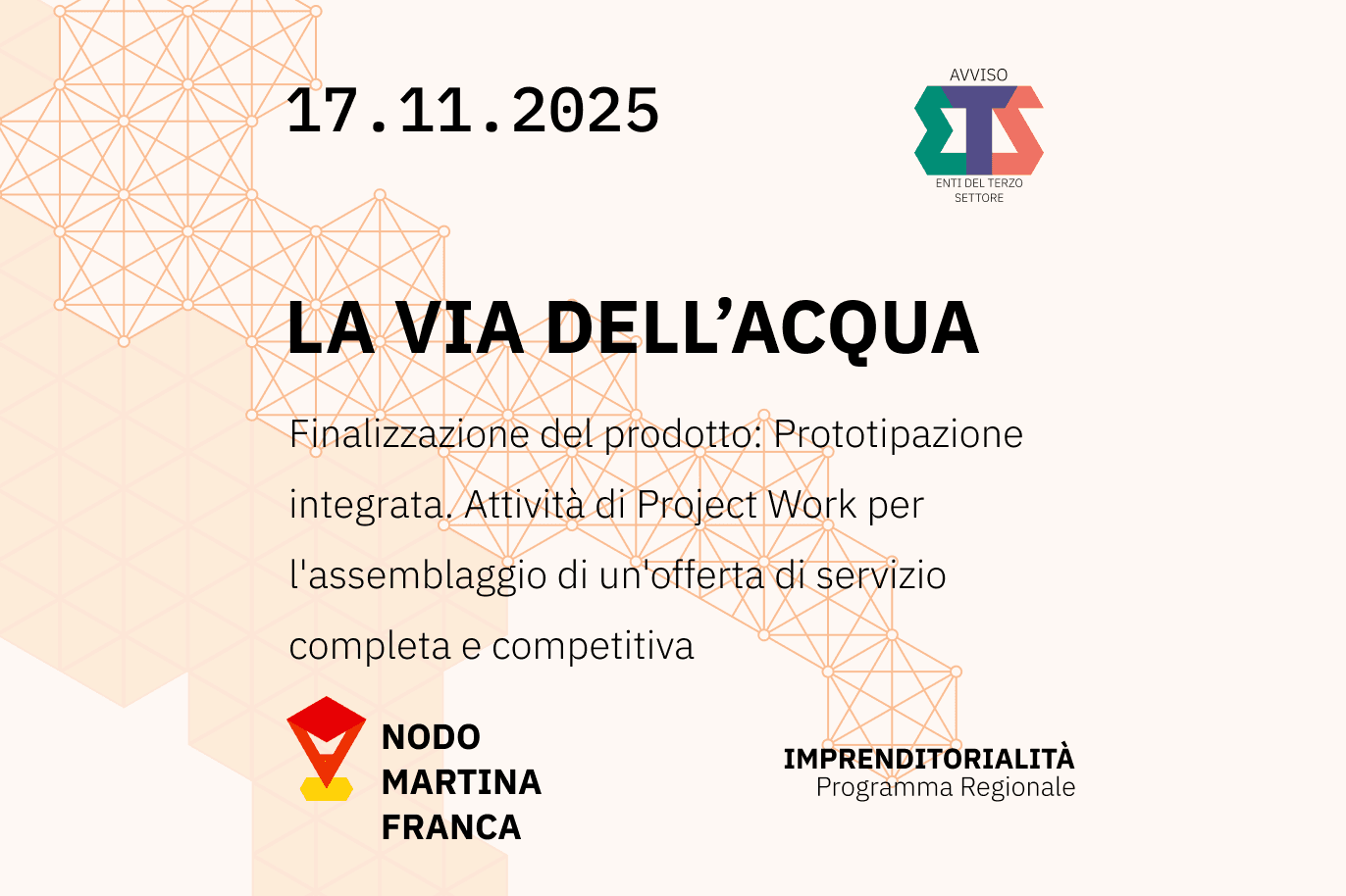 Invito all’incontro formativo “La via dell’acqua”. Finalizzazione del prodotto: prototipazione integrata.