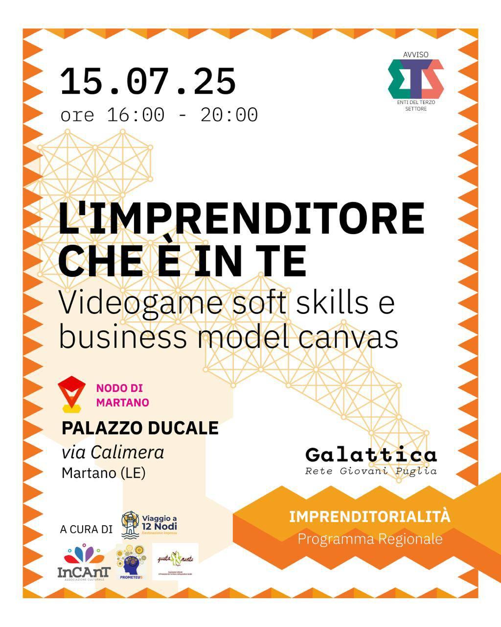 Se sei un giovane tra i 17 e i 35 anni con un’idea innovativa nel cassetto o semplicemente vuoi scoprire il tuo potenziale imprenditoriale , il Nodo Galattica di Martano ospiterà delle giornate formative curate da INCANT Associazione Culturale, GustaMente e Viaggio a 12 Nodi.