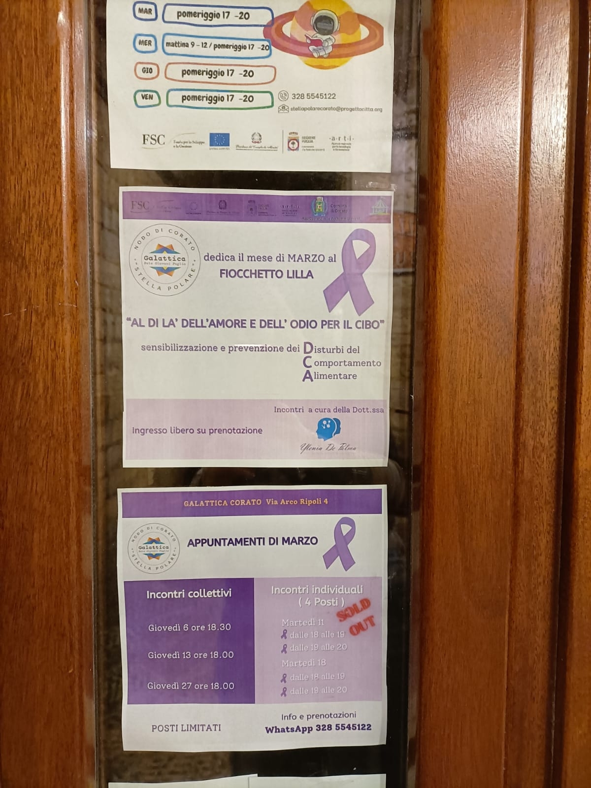 Galattica Corato accoglie il progetto per la prevenzione e la sensibilizzazione dei DCA (disturbi comportamento alimentare)
