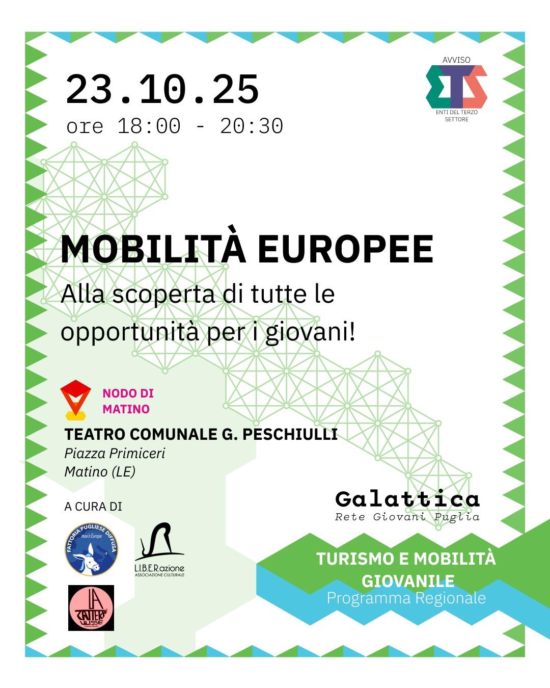 Percorso itinerante, finalizzato a promuovere le opportunità di mobilità europea per i giovani e di ospitalità e invio volontari/personale a beneficio degli ETS. L’incontro è curato da “Fattoria Pugliese Diffusa”, nell’ambito del programma regionale Galattica, per Turismo e mobilità Giovanile.