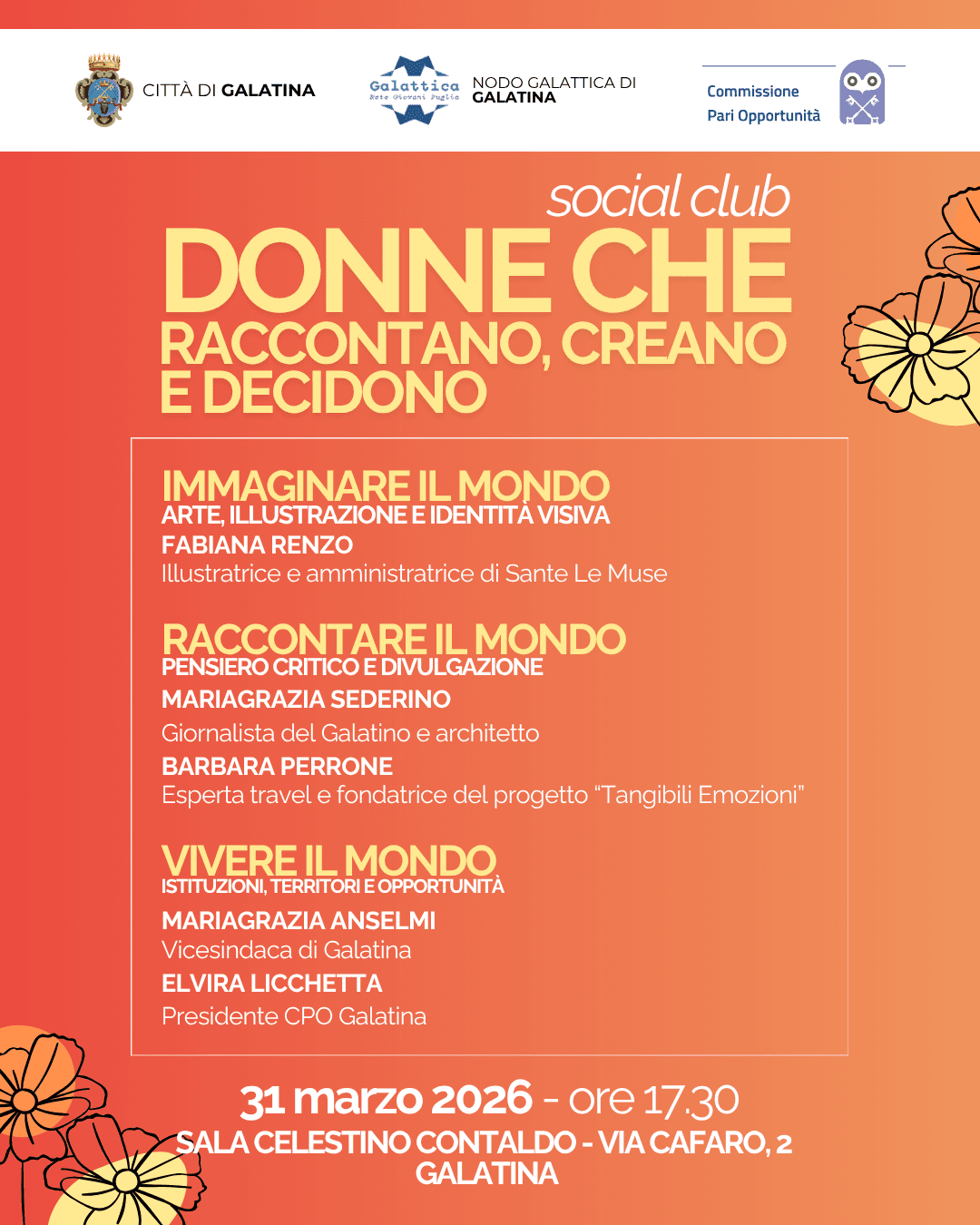 E con Mariagrazia Anselmi, vicesindaco di Galatina ed Elvira Licchetta, presidente della CPO, parleremo di “Vivere il mondo”, tra istituzioni, territori e opportunità concrete.
