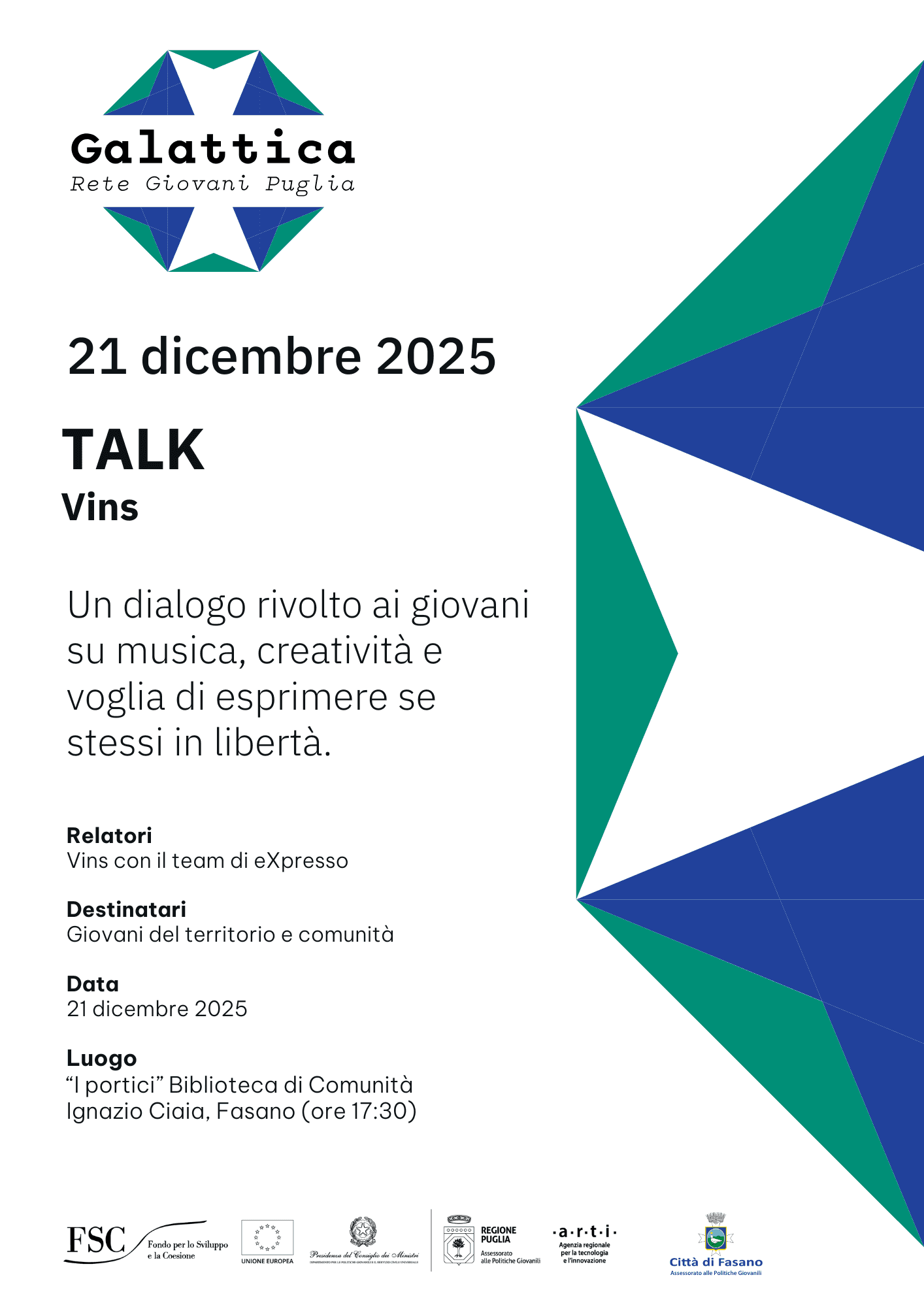 Domenica 21 dicembre un nuovo appuntamento con i talk del progetto Galattica con Vins!