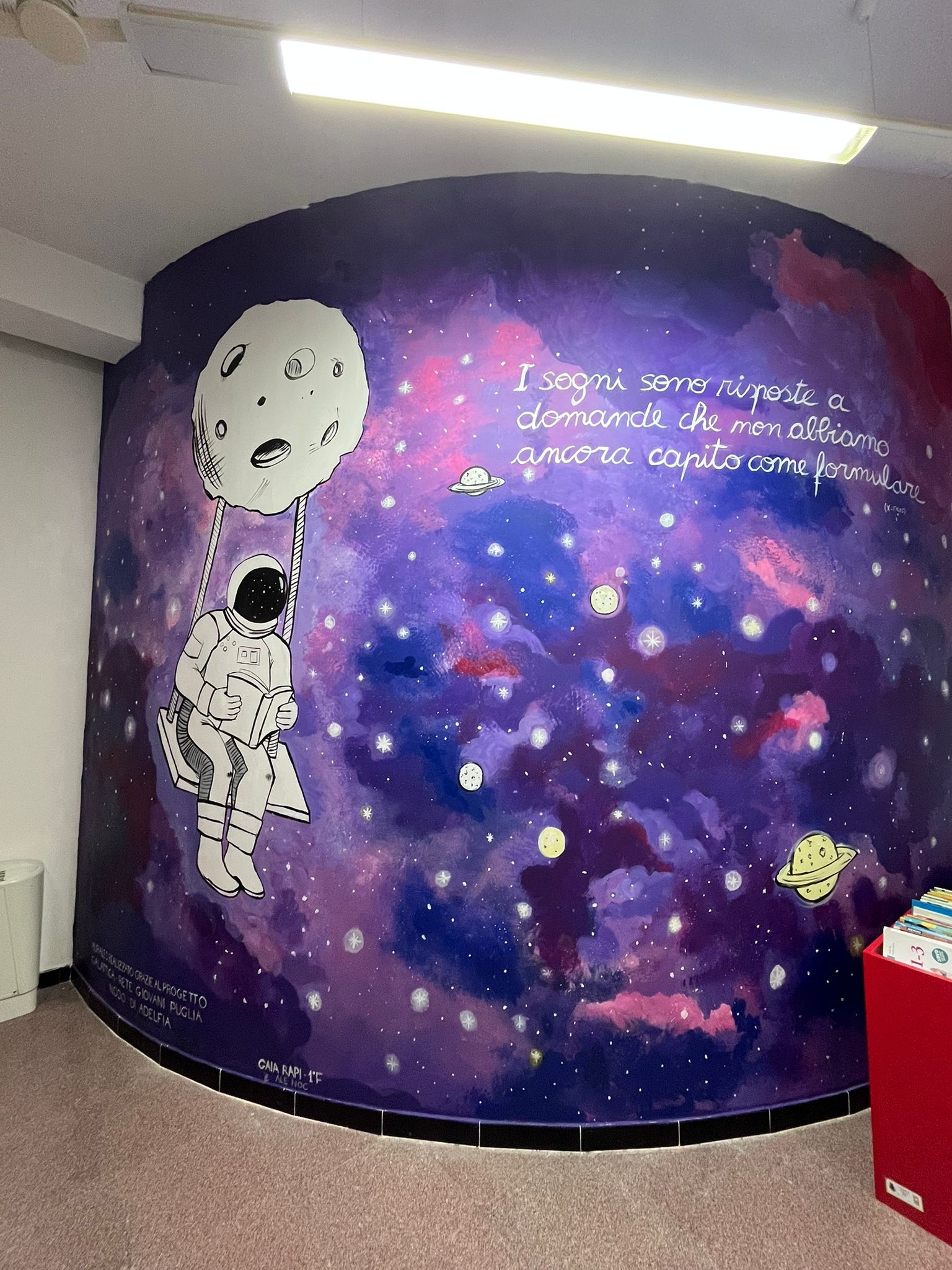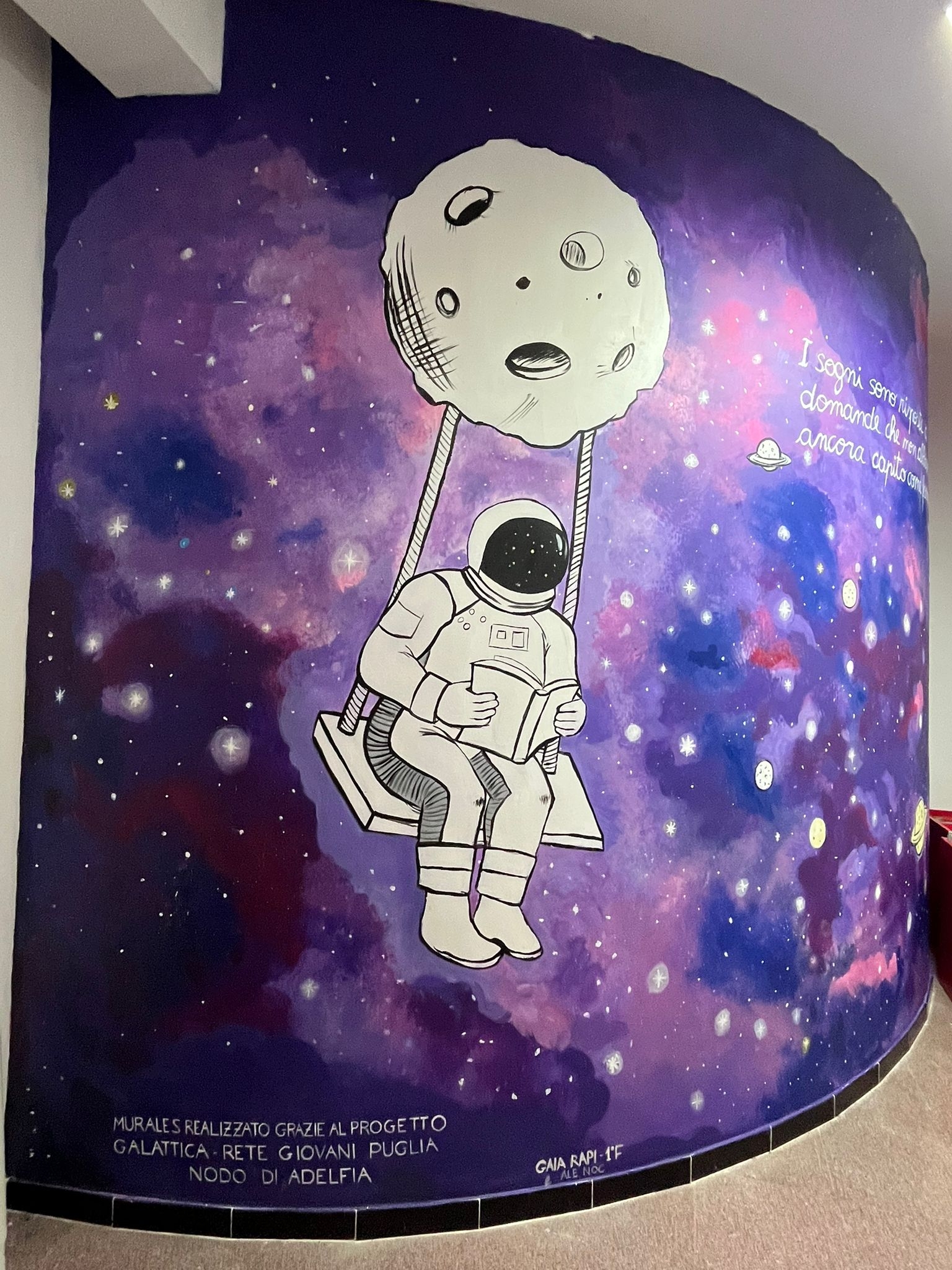 Gli spazi sono quelli della Biblioteca A.Cafaro, che offre una varietà di spazi dedicati alle diverse esigenze dei giovani: OhhTeca è l’area di accoglienza e lo sportello Galattica, seguita dalla Sala studio e lettura, la EnjoyTeca riservata ai bambini e ragazzi, una stanza dedicata al progetto Galattica e una Libreria con un giardino esterno.